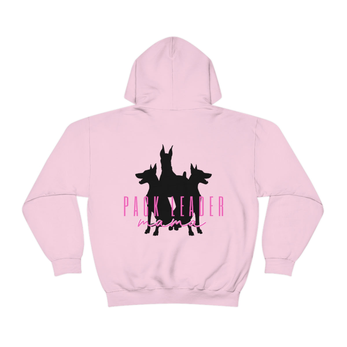 Our Fully Customizable Dog Silhouette Pack Leader MAMA graphic featured on the BACK of our Hoodie Sweatshirt.