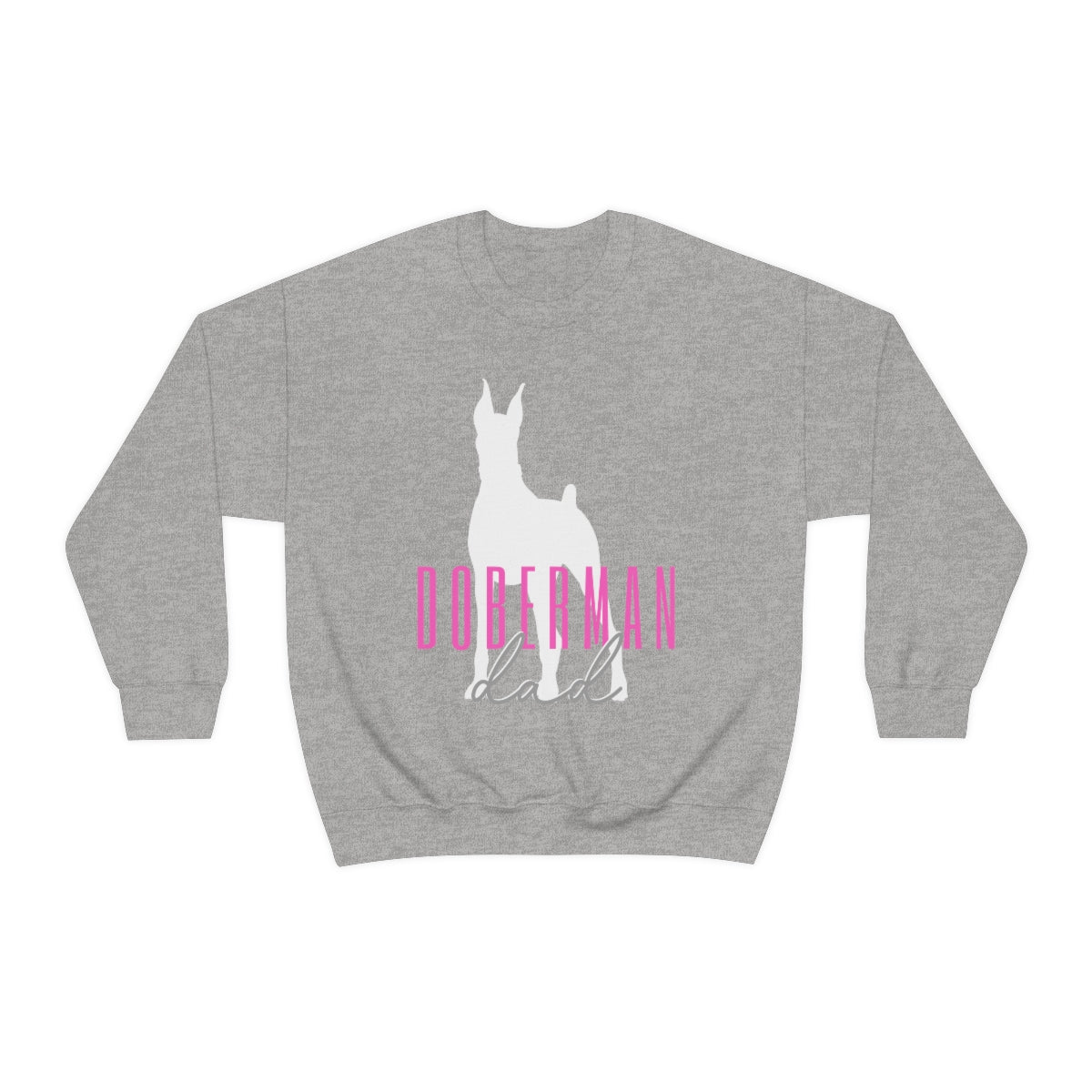 Our "Doberman dad" - shown in the "dad" version here, sweatshirt graphic on the FRONT.
