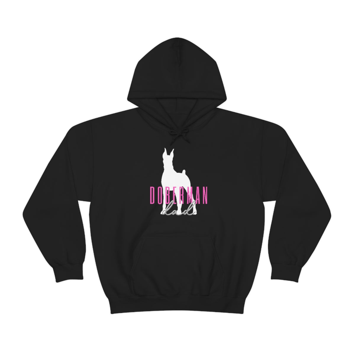 Our "Doberman dad" graphic featured on the FRONT of our Hoodie Sweatshirt.