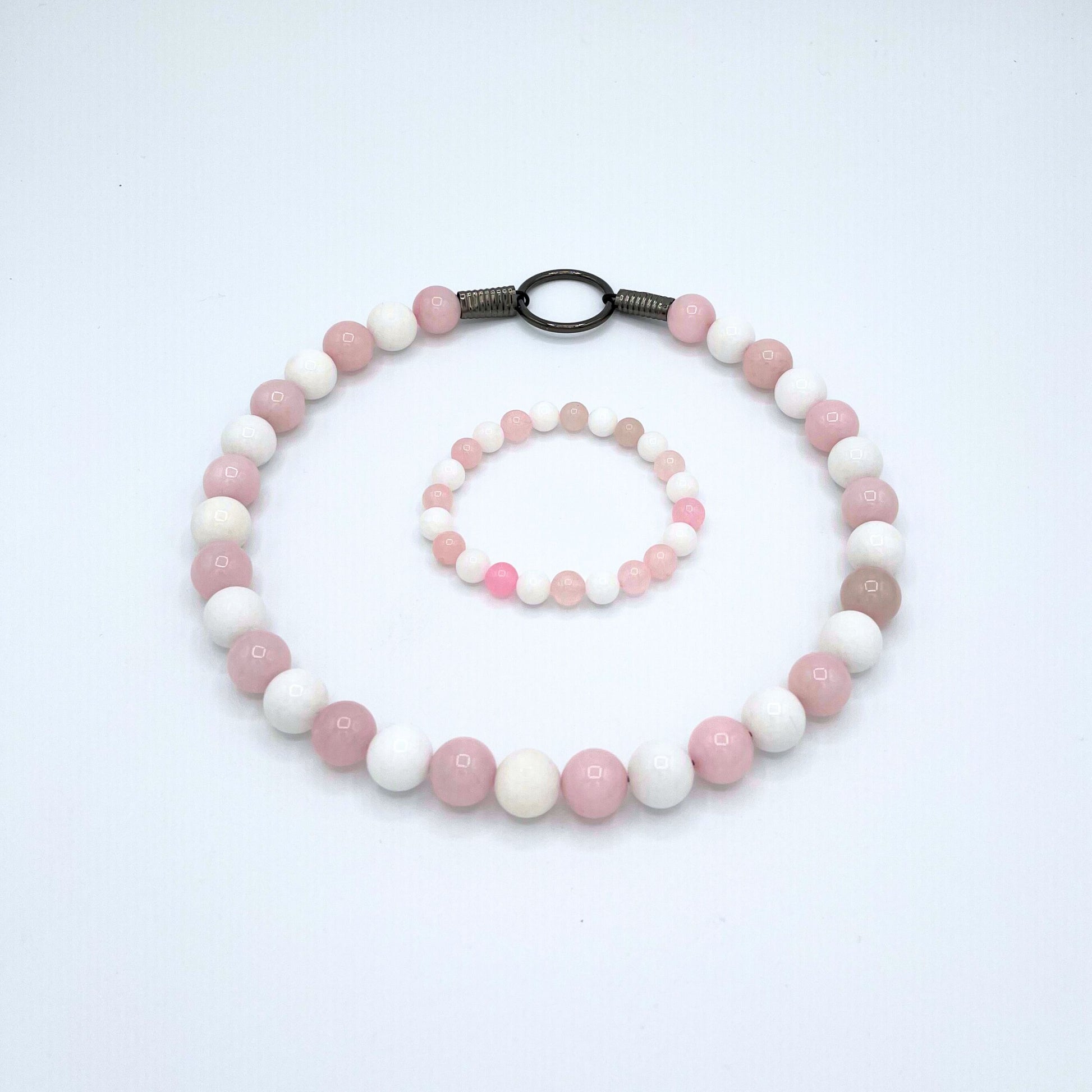 Dog Mala - Custom Beaded Rose Quartz and White Jade Dog Collar