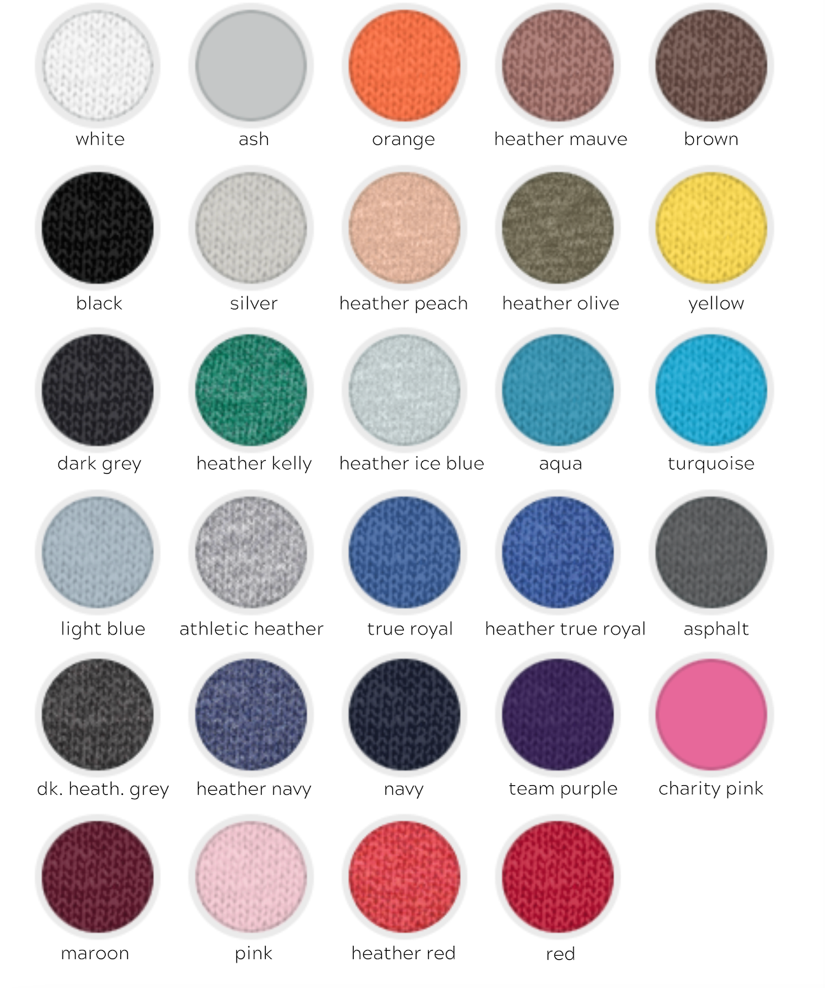 • 100% combed and ring-spun cotton (Heather colors contain polyester)